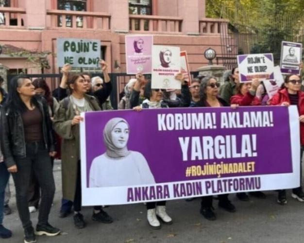 أنقرة-زمن FM- أصدرت منصة النساء في انقرة بيانا امام مبنى وزارة العدل، يوم أمس الاثنين، لتوضيح السبب المجهول حول مقتل روجين كاباييش الطالبة في جامعة (Yuzuncu Yilê) في مدينة وان. وردد الحضور خلالها شعارات "لا لعدالة الرجل. نعم للعدالة الحقيقية" و " على هيئة الطب الشرعي إيضاح نتائج (DNA)" و "ارتكاب الجنايات على النساء تعتبر سياسات" "لا تحمي ولا تخفي الفاعلين. أظهروا الحقائق" ورفعت لافتة تحمل شعار "لا تحمي ولا تخفي الفاعلين. أظهروا الحقائق"