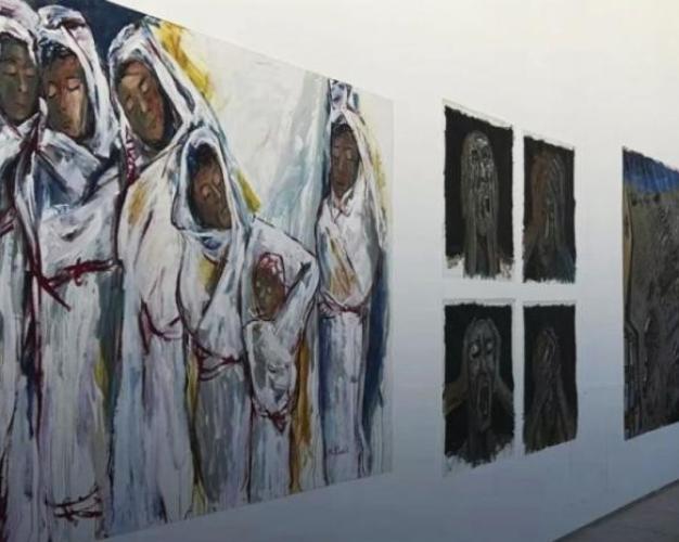 أهلًا بكم في معرض الجثث والغبار والحزن المتجمد في جنازات اعمارنا، قبل أن تبعثرها الصواريخ والطائرات المغيرة، هنا لا تُعرض لوحات، بل تُعرض الحقيقة، عاريةً كما وُلدت من رحم النار، هنا يمكن أن نصلي، ونتطلع إلى السماء لنجمع غيومنا البعيدة.