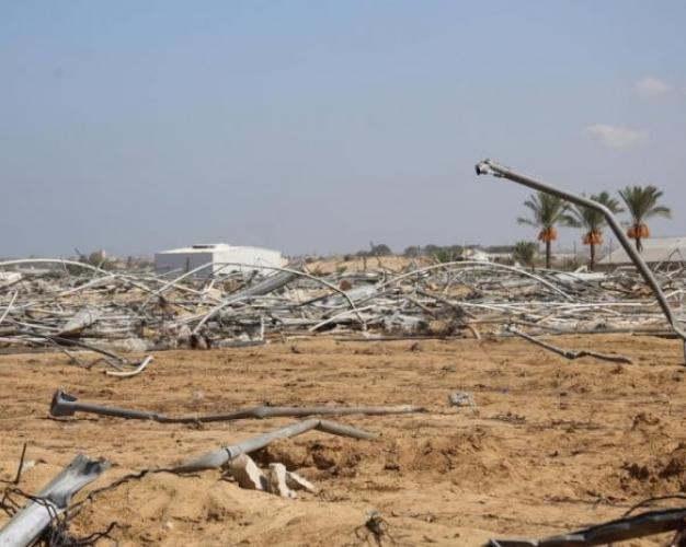 وقالت إن نحو 70% من البيوت البلاستيكية الزراعية دُمّرت بالكامل، فيما تضررت غالبية الآبار، ما جعل الوصول إلى المياه شبه مستحيل، وأدى إلى انهيار شبه كامل في منظومة الإنتاج المحلي داخل القطاع.