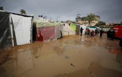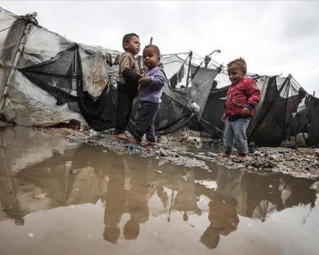 خيام متهالكة والمياه تتسرب داخلها، ومئات آلاف المدنيين تُركوا لمصيرهم بلا مأوى، وجهود الإغاثة تتعثر بسبب مواصلة الاحتلال منع دخول المساعدات وفرض الحصار في خرق لما نص عليه اتفاق وقف إطلاق النار.