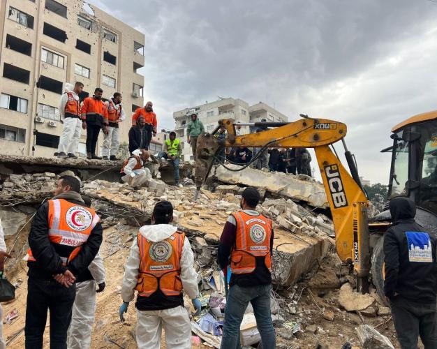 الدفاع المدني يستأنف انتشال الشهداء من تحت الأنقاض في حي الأمل بخانيونس