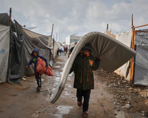 وتسببت رياح قوية وأمطار غزيرة، في غرق عدد من خيام النازحين وتطاير أخرى بمناطق متفرقة من قطاع غزة، خاصة في خان يونس، بفعل منخفض جوي يضرب القطاع، ما فاقم معاناة عشرات آلاف العائلات الفلسطينية.