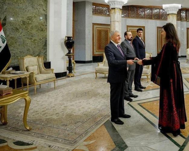 وأعرب الرئيس العراقي عن تمنياته للسفيرة عوض الله بالتوفيق والنجاح في أداء مهامها الدبلوماسية، وبما يعزّز أواصر الأخوّة والعلاقات الوطنية بين البلدين الشقيقين، والتاريخ المشترك الذي يجمع الشعبين العراقي والفلسطيني، وعلاقات التعاون في مختلف المجالات وبما يخدم مصالح الشعبين.