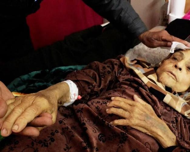 وفي مشهد آخر، يظهر محمد حمو وهو يعتني بوالدته المسنة، المريضة بالسرطان، مطالبا بتوفير العلاج داخل القطاع أو السماح بتحويلها إلى الخارج. وقال: "نقف هكذا أمام المريض وهو يموت بدون علاج أو أي إمكانيات طبية تساعد في شفائه. هذا أمر لا يرضي الله ولا يرضي الناس. نحن نطالب جميع الأمم الإسلامية والعربية والدولية أن ينظروا إلى المرضى بعين الرحمة".