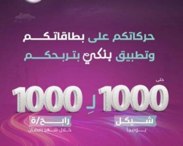 وأشار البنك إلى أن الحد الأدنى لقيمة الحركة المنفذة عبر التطبيق أو عملية الشراء المؤهلة للدخول في السحب اليومي يبلغ 50 شيكل أو ما يعادلها بالعملات الأخرى، فيما يصل الحد الأعلى لقيمة الجائزة لـ 1000 شيكل،خلال الشهر الفضيل.